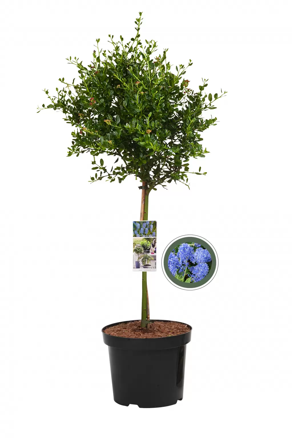 De Amerikaanse sering op stam is een langbloeiend boompje die rijk bloeit in de periode van mei tot juli met prachtige diep blauwe bloemen. Het is een groenblijvend boompje met glanzend en donkergroen blad. De Amerikaanse sering op stam kan op vrijwel iedere plaats in de tuin of in een bloempot op het terras staan. Hij staat het liefste op een lichte plaats uit de wind, in de zon of halfschaduw.