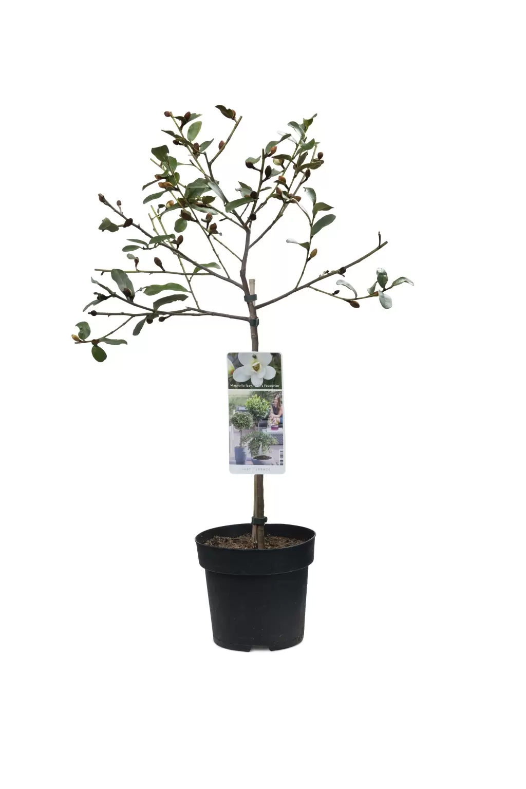 Magnolia Gail’s Favourite is een prachtig groenblijvend boompje dat al vroeg in het voorjaar, rond april/mei, talrijke goudbruine, fluwelen knoppen vormt. ‘Gail’ staat voor ‘blij, vol met leven’ en dat straalt dit boompje zeker uit. De bruine knoppen gaan in het voorjaar openbloeien tot mooie witte, geurende bloemen met een geel hart. Het boompje heeft donkergroene, glimmende bladeren die aan de onderzijde bruin van kleur zijn en fluweel zacht aanvoelen. In het vroege voorjaar zullen een aantal bladeren bruin kleuren en afvallen. Snel genoeg daarna vormen zich nieuwe frisse bladeren. Tevens heeft hij een vrij open kroon, waarmee hij wel een groots effect geeft. De Magnolia op stam is een langzaam groeiend boompje en staat het liefst in de zon of halfschaduw in de volle grond of in een bloempot op het terras.